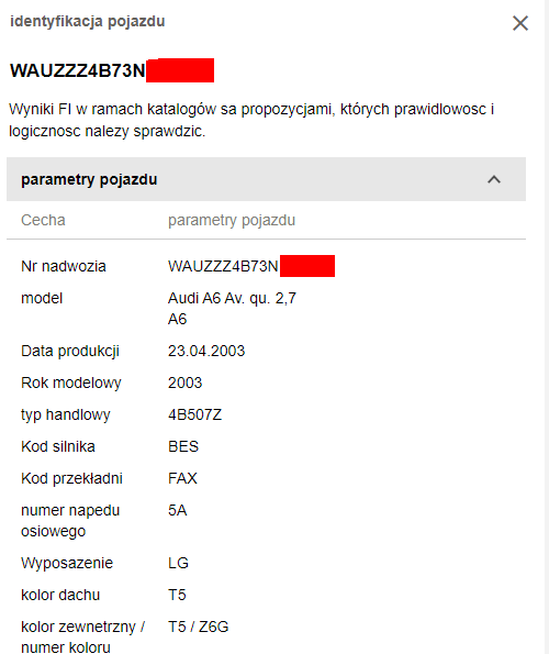 – Identyfikacja VIN i katalog części do rozsądnej ilości gratis